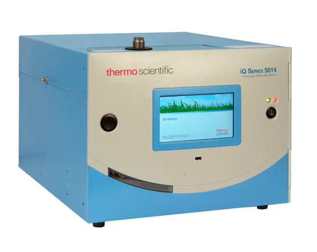 El monitor de Thermo Scientific 5014iQ está diseñado para monitorear PM-2.5, PM-10, PM-1 y TSP en aire ambiente. Las muestras de PM se recolectan mediante una cinta filtrante que avanza automáticamente a un punto limpio, lo que reduce la necesidad de supervisión. El avance de la cinta filtrante se controla mediante parámetros definidos por el usuario, como límites de acumulación de masa, caudales y un patrón de avance continuo para ayudar a mitigar la pérdida de partículas.